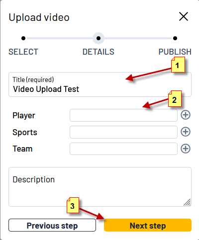 ⚠️ Be sure to select the first period (or first video part) first if you’re uploading multiple files for one game. - Edit the video details: