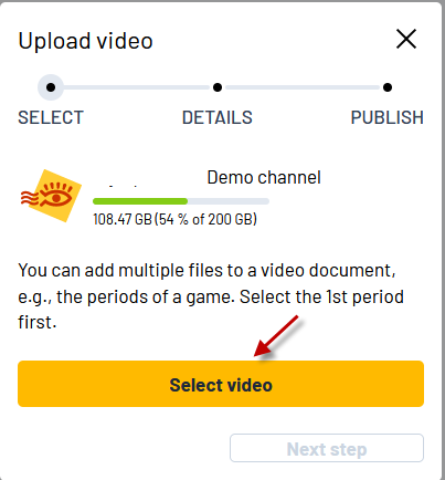 - Multiple File Uploads: Add up to 4 video files to a single video document (e.g., periods of a game). Be sure to select the first period video file first.