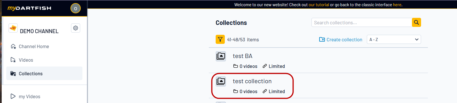 - Navigate to the collection where you want the videos to be uploaded.