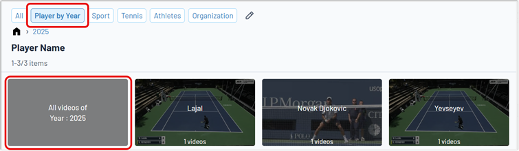 - At any level, users can click All Videos Of: {Category} — {Keyword} to exit the tree at that point and display all videos matching the selected category value.