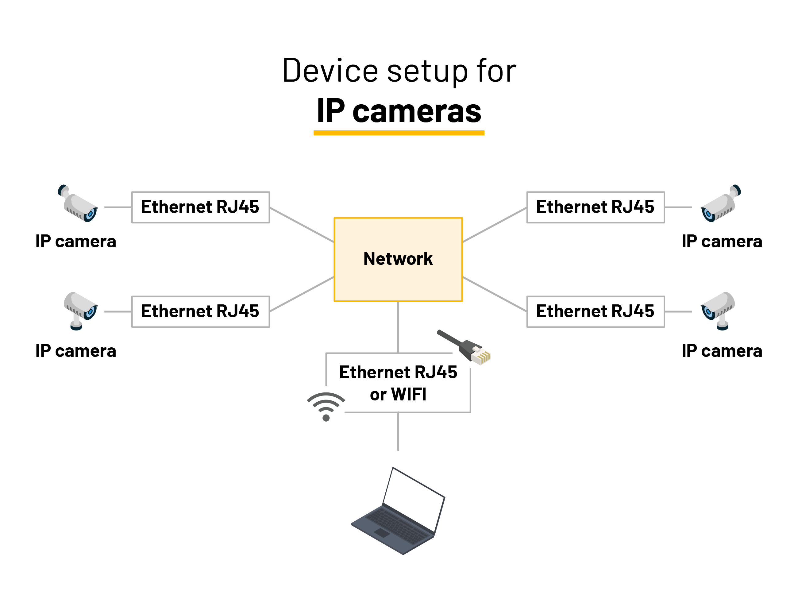 At a high level, setting up an IP camera involves: