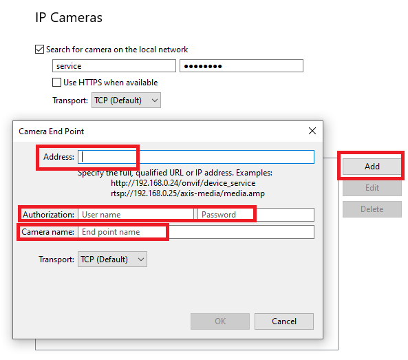 | "Sender not authorised. 0x80043012" | Credentials issue | Check that you entered the correct camera or Onvif user credentials |