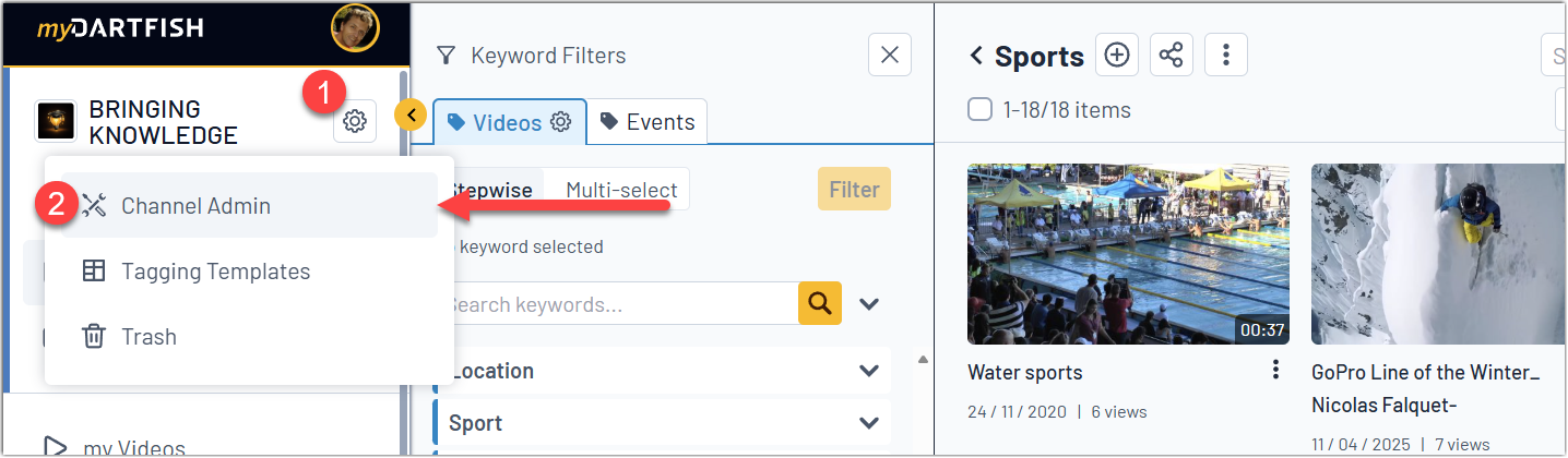 This article explains the essential steps to start using a channel on dartfish.tv as an administrator. It is intended as a quick onboarding guide and focuses on the minimum setup needed to begin organizing content and giving access to the right people.
