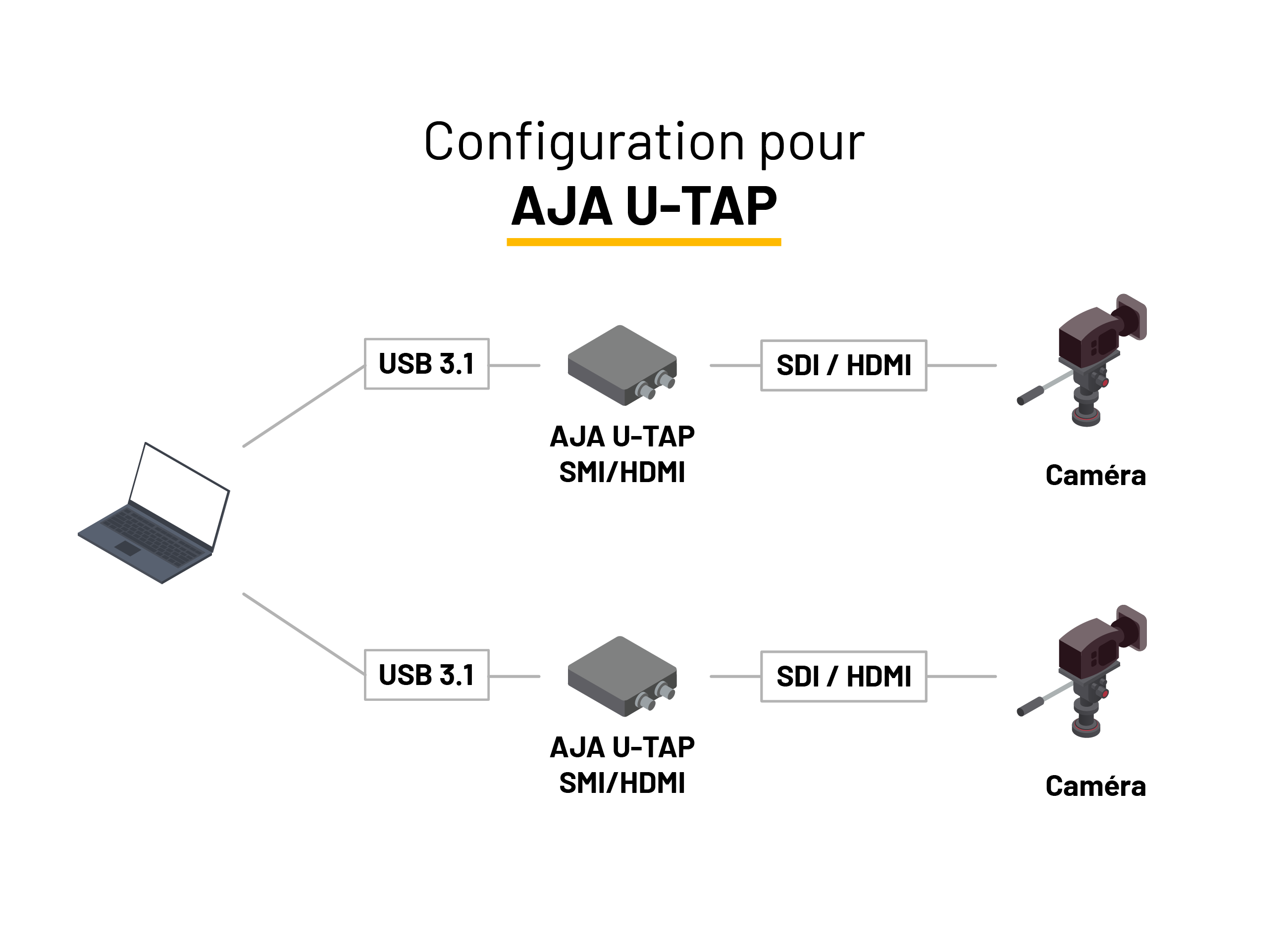 | Caméra professionnelle (HDMI/SDI) | AJA U-TAP, Blackmagic UltraStudio Recorder 3G |