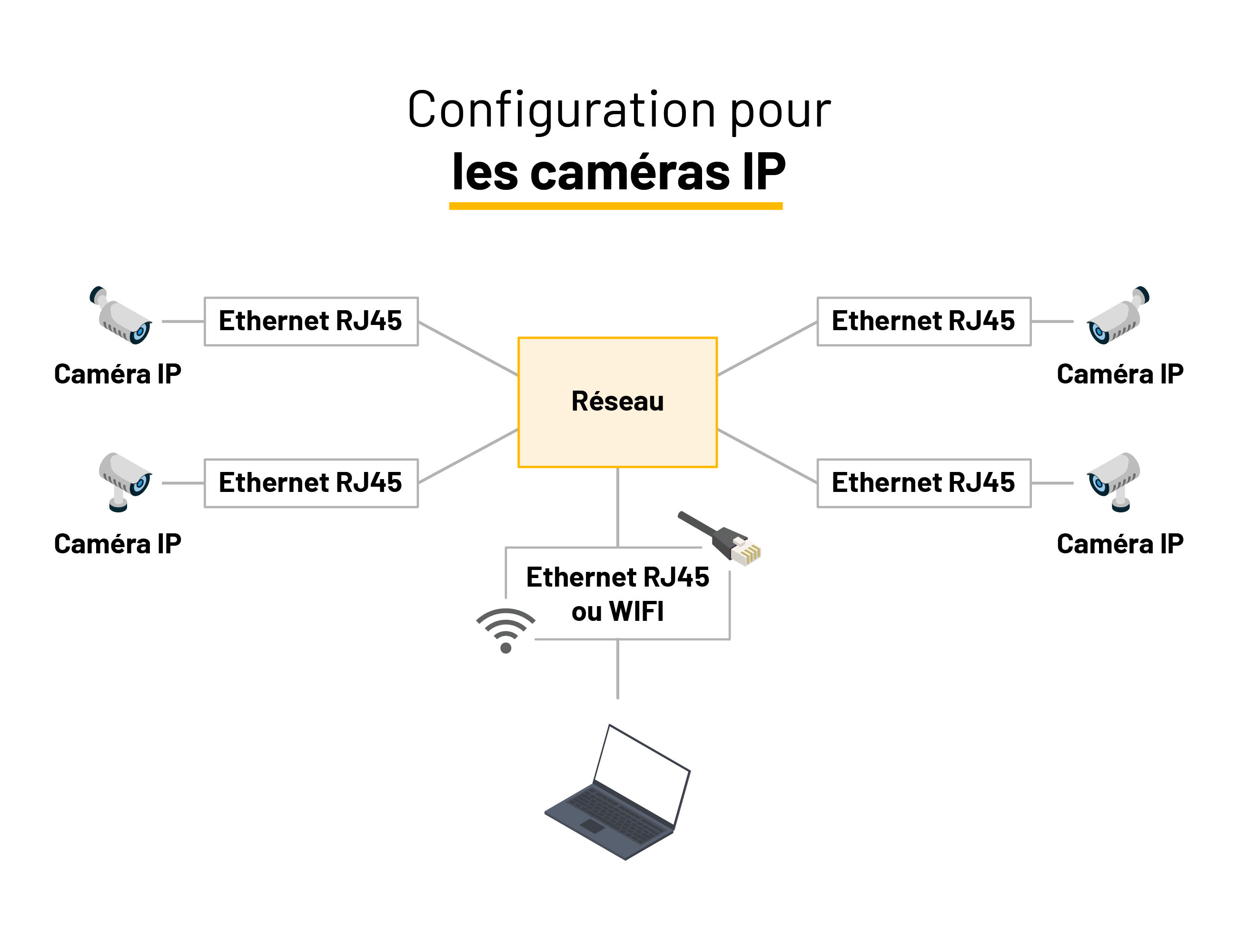 | Installation fixe intérieure ou extérieure | Caméra IP ONVIF |