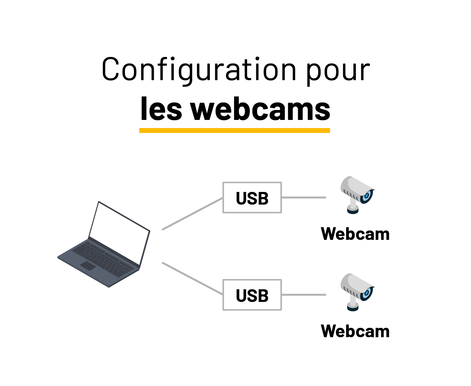 Exemples : Logitech C922, Microsoft LifeCam, Logitech BRIO