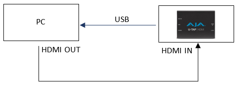- Connectez la sortie HDMI de l’ordinateur portable à l’AJA U-TAP HDMI
