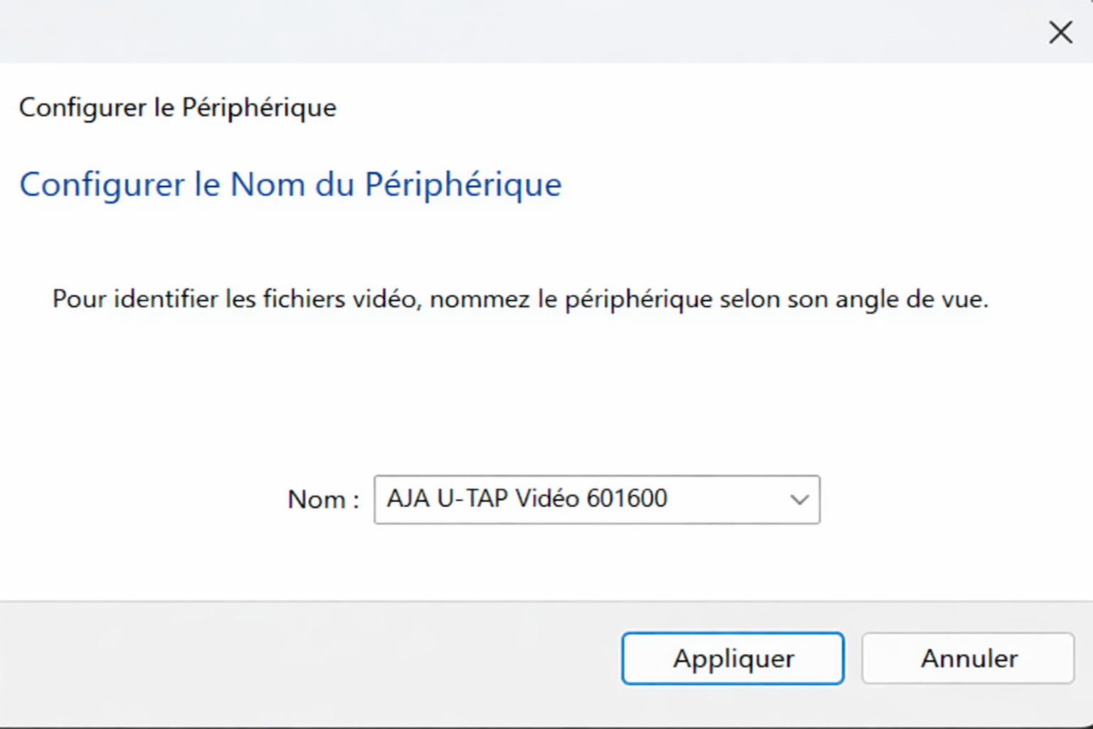 - Cliquez sur Appliquer dans la fenêtre du nom du dispositif