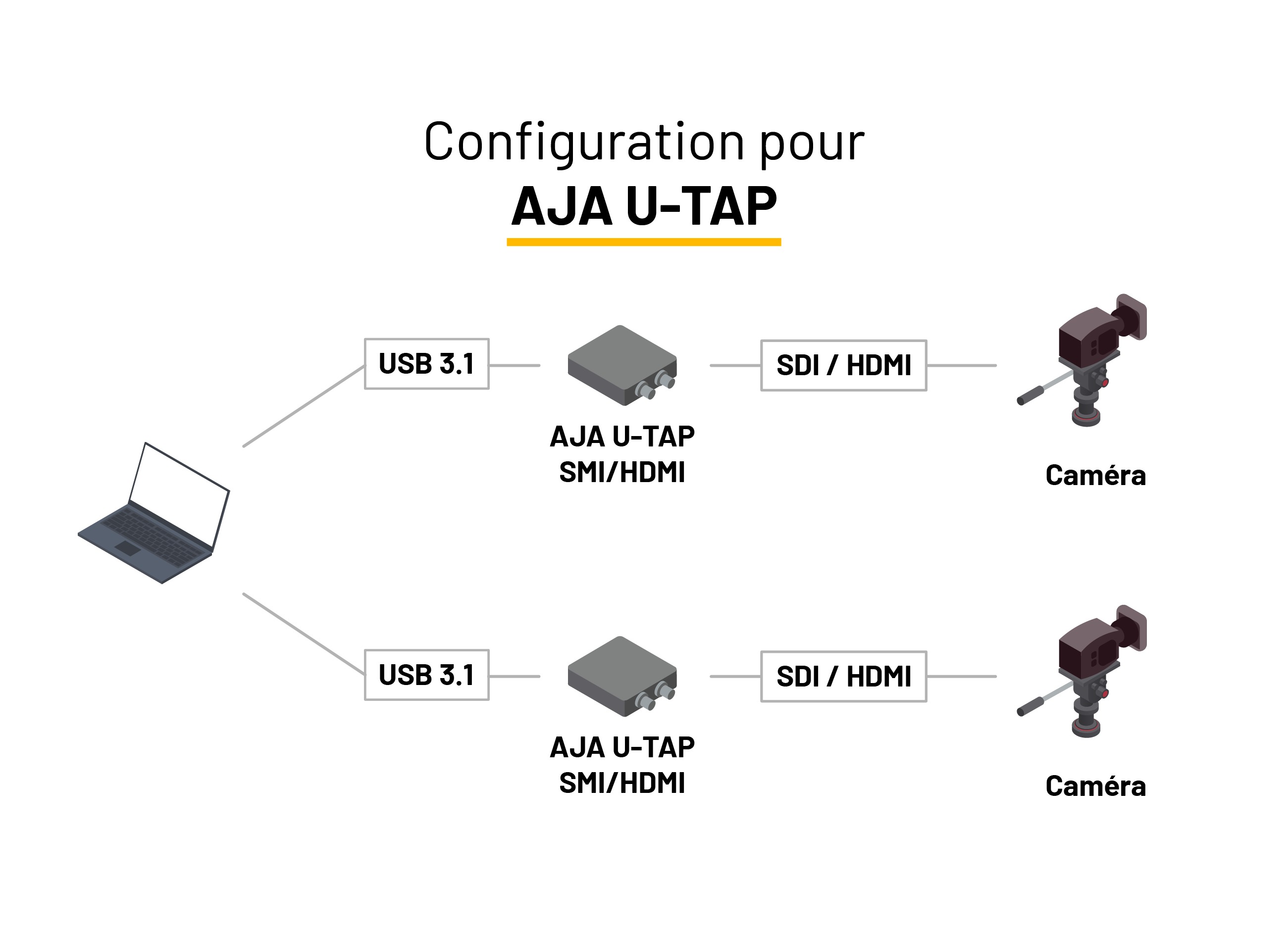 Cette configuration fonctionne uniquement avec l’AJA U-TAP HDMI.