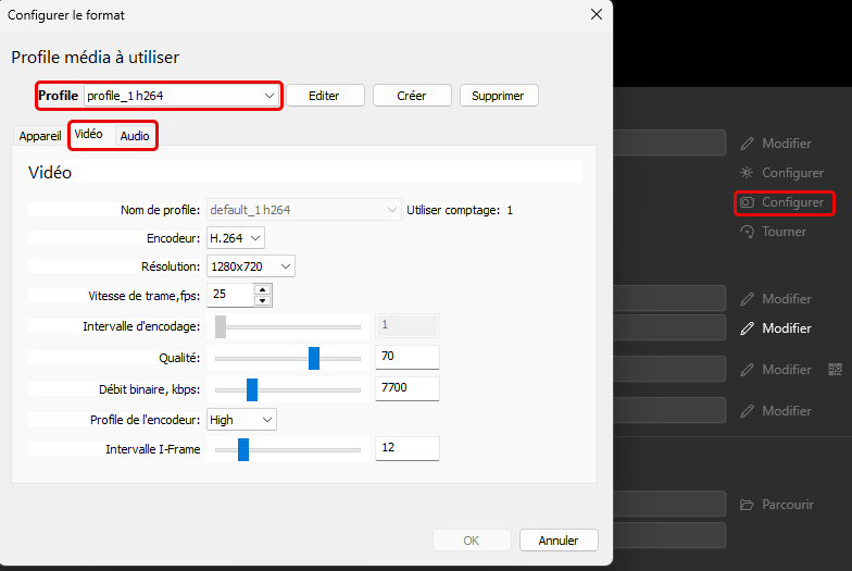 - La configuration correcte des profils vidéo