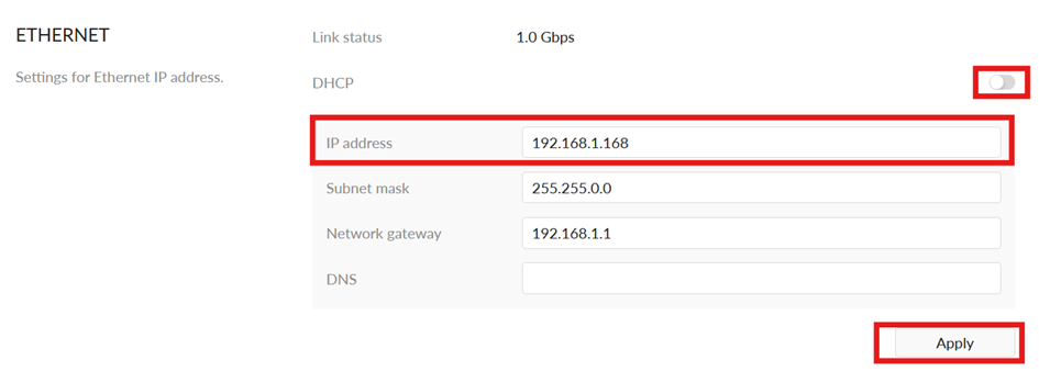Redémarrez l’appareil à l’aide de l’interrupteur sur le boîtier, connectez le PC à l’encodeur avec un câble Ethernet et essayez d’accéder à l’appareil via l’adresse IP 192.168.1.168.